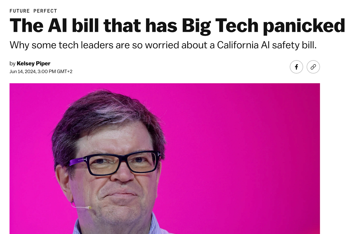 California State Senator Scott Wiener is behind SB 1047, a bill mandating that developers of large AI models must test and certify their creations to ensure they won't cause significant harm. This legislation has received endorsements from Geoffrey Hinton and Yoshua Bengio, two of the most prominent and frequently cited researchers in the AI field.