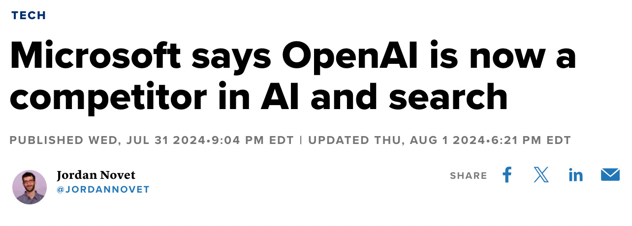 On top of that, Microsoft—the sugardaddy to end all sugardaddies—is starting to consider OpenAI a competitor rather than a friend. This spells bad news for OpenAI, while probably not having much of an effect on Microsoft, which has access to the IP powering OpenAI’s models.